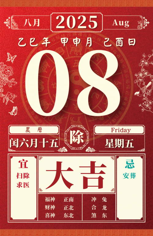 旺运方位:此日利于朝北方出行;西南方不宜。