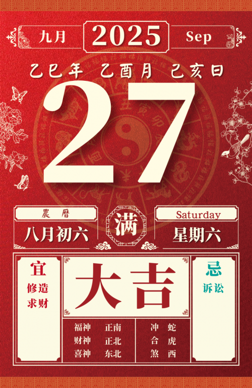 旺运方位:此日利于朝东北方出行;西方不宜。