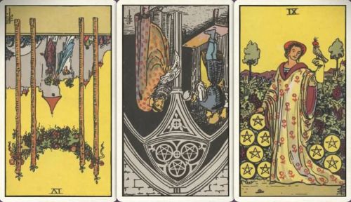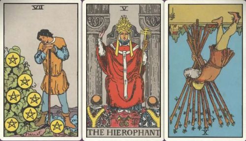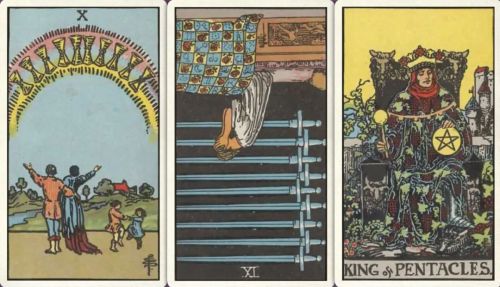 牌:圣杯十+ 宝剑九- 星币皇帝+