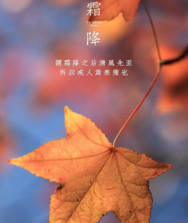 霜降,是秋季的最后一个节气,通常落在每年公历的10月23日或24日。此时,太阳到达黄经210度,寒气日渐加深,露水因地面的低温而凝结成霜。《月令七十二候集解》中说:“九月中,气肃而凝,露结为霜矣。”古人将霜降分为三候:一候豺乃祭兽;二候草木黄落;三候蜇虫咸俯。意思是,豺狼开始大量捕猎,并将猎物陈列开来,仿佛在举行一场冬前的祭祀;草木的叶子纷纷枯黄、飘落;那些需要冬眠的虫类也都不再活动,蜷缩在洞穴之中,准备进入漫长的蛰伏。这一切物候现象,都指向一个共同的趋势——收敛与终结。