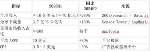 美国市场下载量超 1.8亿次,贡献全球收入的50%以上;