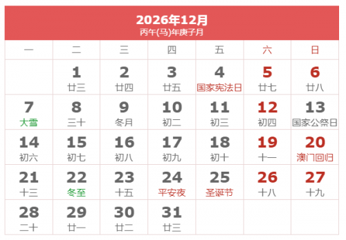 2026年假期放假时间表,春节放9天,2026放假日历表