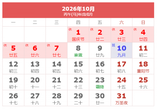 放假:10月1日 ~ 7日(周四 ~ 周三)