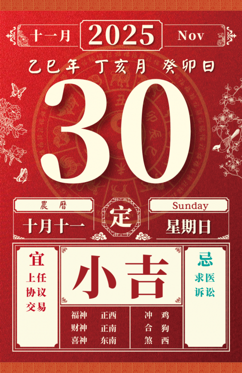 旺运方位:此日利于朝南方出行;西方不宜。