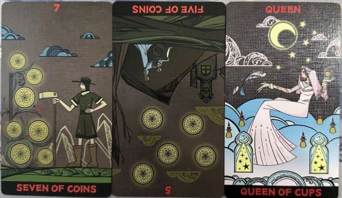 牌:星币七+ 星币五- 圣杯皇后+
