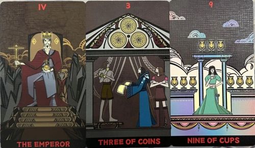 牌:皇帝+ 星币三+ 圣杯九+
