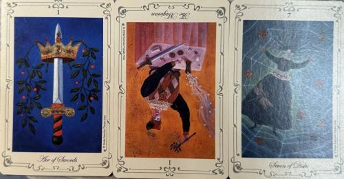 牌:宝剑六+ 宝剑四+ 圣杯五-