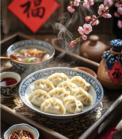 冬至前夜,一家人围坐在一起和面、调馅、擀皮、包捏,是许多北方家庭的传统。猪肉白菜、韭菜鸡蛋、羊肉胡萝卜……各种馅料在巧手中变成一排排元宝似的饺子。当热气腾腾的饺子出锅,蘸上醋和蒜泥,一口咬下,汤汁四溢,不仅暖了胃,更暖了心。