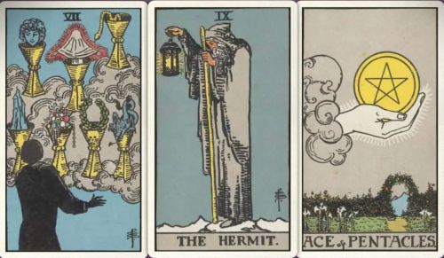 牌:圣杯七+ 隐士+ 星币ace+