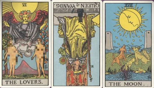牌:恋人+ 权杖皇后- 月亮+
