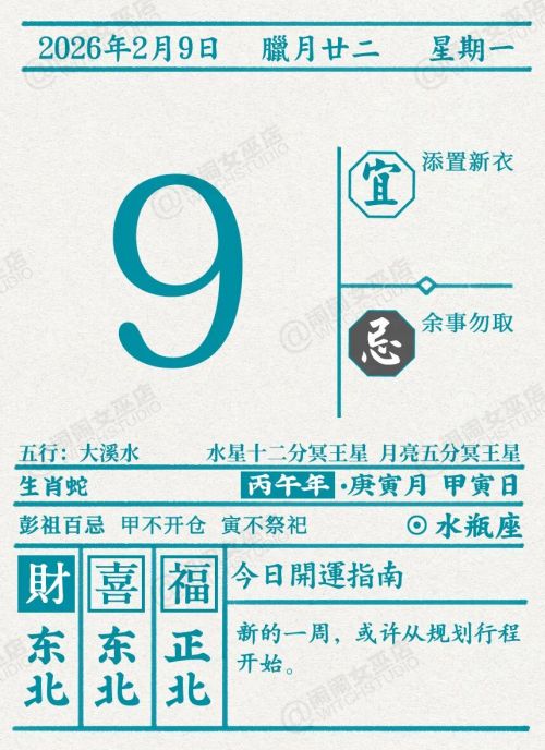 闹闹女巫店今日运势2026年2月9日