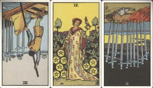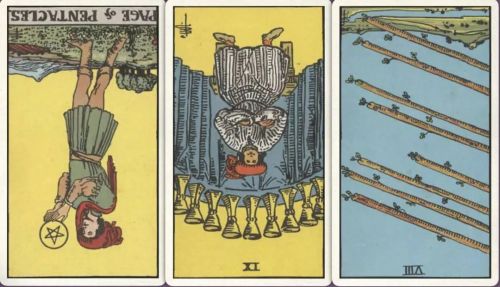 牌:星币侍从- 圣杯九- 宝剑八-