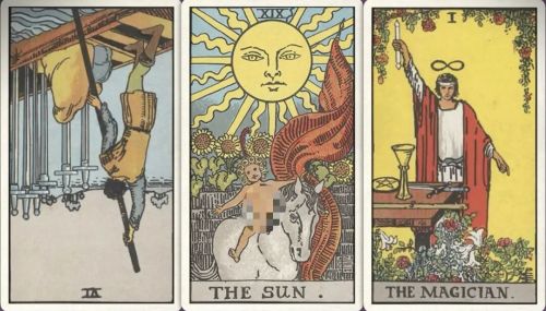 牌:倒吊人+ 权杖二+ 宝剑侍从-