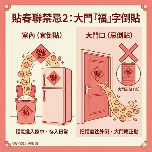 然而,大门作为家宅主要气口,若将“福”字倒贴于门面,则易产生“福气倒出”的联想。因此,在大门张贴“福”字,仍建议正贴,寓意福气端正入门,安稳落户。