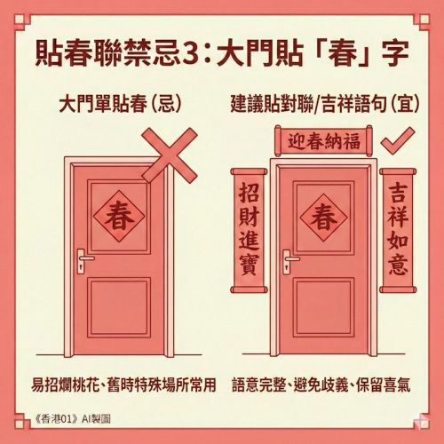 “春”字虽象征生机,但在传统语境中,并不适合单独贴于住宅大门。因历史上“春”字常与特定场所关联,部分民俗观点认为,单独贴“春”于家门,易招致不必要的联想。