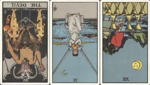 牌:恶魔- 宝剑二- 圣杯八-