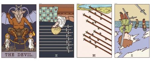 正位魔鬼、逆位宝剑九