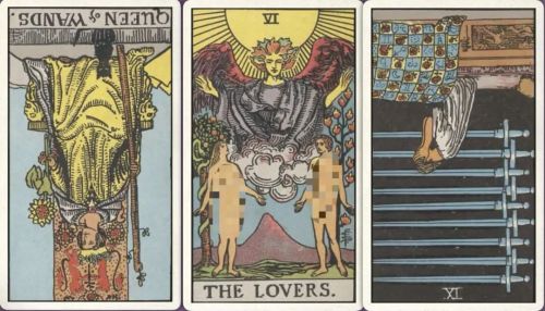 牌:权杖皇后- 恋人+ 宝剑九-