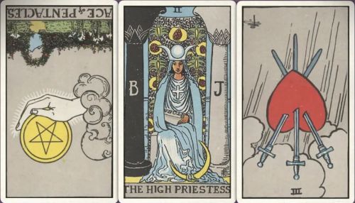 牌:星币ace- 女祭司+ 宝剑三-