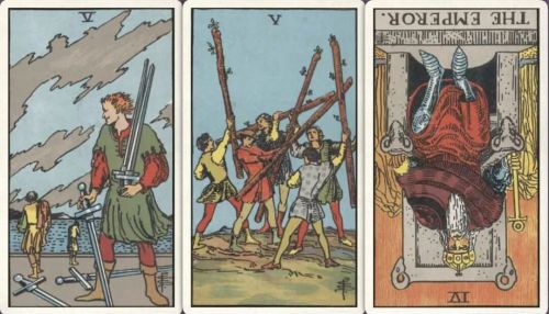 牌:宝剑五+ 权杖五+ 皇帝-