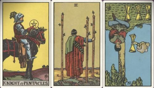 牌:星币骑士+ 权杖三+ 圣杯四-
