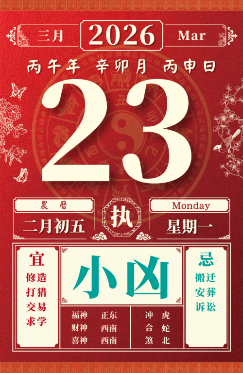 旺运方位:此日利于朝东方出行;东南方不宜。