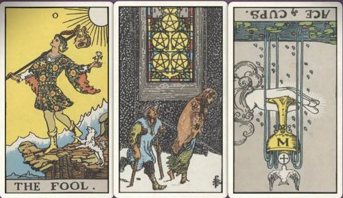 牌:愚人+ 星币五+圣杯ace-