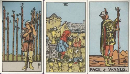 牌:权杖九+ 圣杯六+ 权杖侍从+