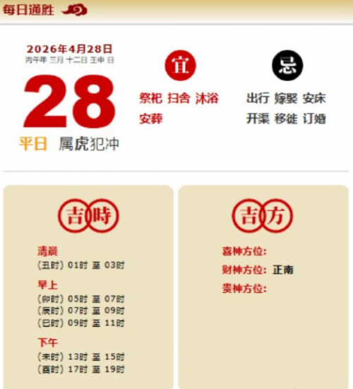 易学董老师:2026年4月28日 每日通胜+今日生肖红黑榜