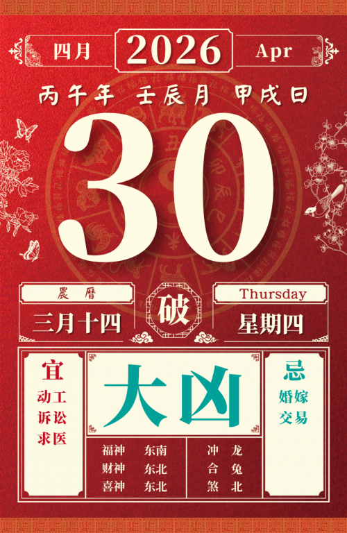 旺运方位:此日利于朝东北方出行;南方不宜。